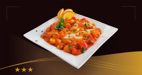 Tintenfisch mit Knoblauch, Tomatensauce und Petersilie